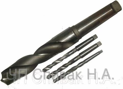 Сверла спиральные с коническим хвостовиком применяются для создания отверстий в различных деталях при помощи стационарных станков. ГОСТ 10903-77 предусматривает выпуск сверл с коническим хвостовиком от 5 до 80 мм. Благодаря коническому хвостовику увеличивается площадь поверхности контакта сверла со сверлильной головкой, что позволяет увеличить точность и повышает надежность крепления. Сверление отверстий диаметром более 25 мм рекомендуется проводят в два этапа. Сначала делают отверстие меньшего диаметра, а потом его рассверливают его до требуемой величины.