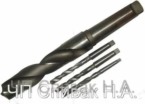 Сверла спиральные с коническим хвостовиком применяются для создания отверстий в различных деталях при помощи стационарных станков. ГОСТ 10903-77 предусматривает выпуск сверл с коническим хвостовиком от 5 до 80 мм. Благодаря коническому хвостовику увеличивается площадь поверхности контакта сверла со сверлильной головкой, что позволяет увеличить точность и повышает надежность крепления. Сверление отверстий диаметром более 25 мм рекомендуется проводят в два этапа. Сначала делают отверстие меньшего диаметра, а потом его рассверливают его до требуемой величины.