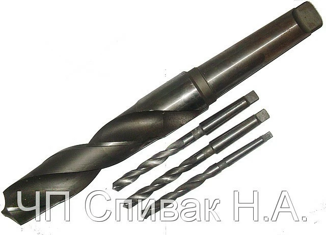 Сверла спиральные с коническим хвостовиком применяются для создания отверстий в различных деталях при помощи стационарных станков. ГОСТ 10903-77 предусматривает выпуск сверл с коническим хвостовиком от 5 до 80 мм. Благодаря коническому хвостовику увеличивается площадь поверхности контакта сверла со сверлильной головкой, что позволяет увеличить точность и повышает надежность крепления. Сверление отверстий диаметром более 25 мм рекомендуется проводят в два этапа. Сначала делают отверстие меньшего диаметра, а потом его рассверливают его до требуемой величины.